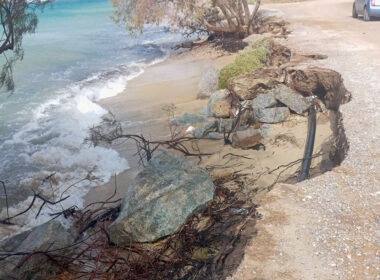 Καθίζηση δρόμου στη Νάξο: Η θάλασσα περνά κάτω από την άσφαλτο (Αγία Άννα – Άγιος Προκόπης)