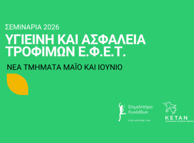Δύο νέα τμήματα επιμόρφωσης τον Μάιο και Ιούνιο για τη λήψη πιστοποιητικού ΕΦΕΤ στην Υγιεινή και Ασφάλεια Τροφίμων