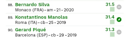 Στους 100 πιο ακριβούς ποδοσφαιριστές των πέντε κορυφαίων πρωταθλημάτων της Ευρώπης (Αγγλίας, Ισπανίας, Γερμανίας, Ιταλίας, Γερμανίας) συμπεριλήφθηκε ο Κώστας Μανωλάς σε έκθεση του Ποδοσφαιρικού Παρατηρητηρίου του Πανεπιστημίου του Νοσατέλ (CIES). Η αξία του αμυντικού της Ρόμα εκτιμάται στα 31 εκατ. ευρώ, όσο του άσου της Μπαρτσελόνα Ζεράρ Πικέ και πολύ πιο πάνω από τον αμυντικό της Ρεάλ Μαδρίτης Μαρσέλο (29,7 εκατ).