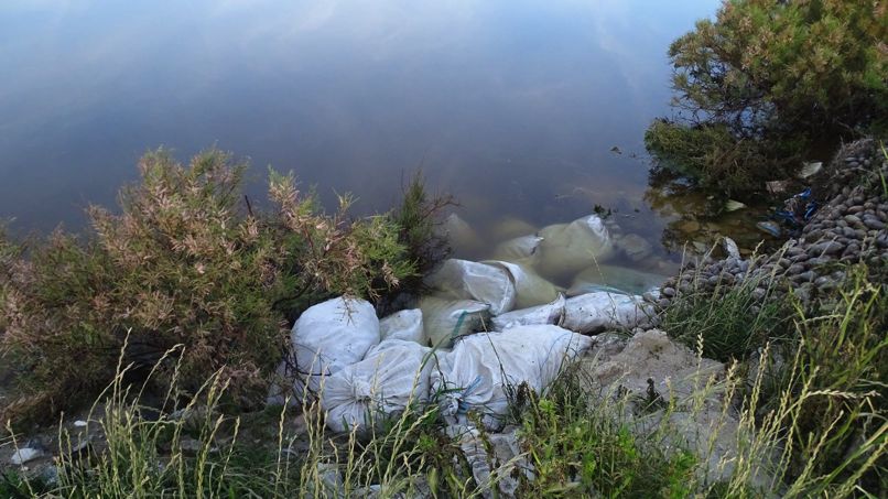 Από τις εικόνες που κατέγραψε ο φωτογραφικός φακός του Συλλόγου “Προστασία Άγριας Ζωής Νάξου”, προκύπτει ότι κάποιοι πέταξαν μπάζα και σκουπίδια μέσα κι έξω από το νερό, μολύνοντας την περιοχή.