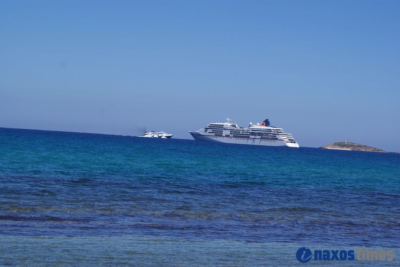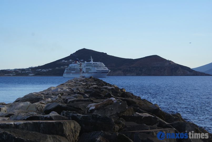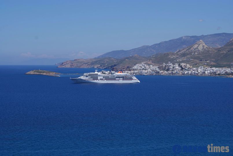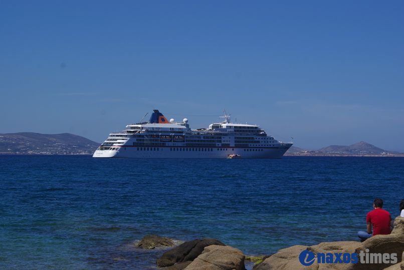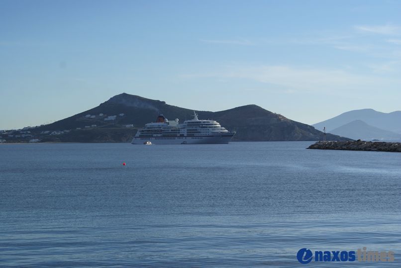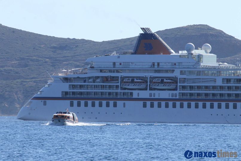 Οι επιβάτες του πολυτελούς κρουαζιερόπλοιου μεταφέρονταν με μικρότερα σκάφη στο λιμάνι, ενώ η άφιξη τους στο νησί συνοδεύτηκε με πρωινή εκδρομή και ξενάγηση στα χωριά Μέλανες, Μονή, Χαλκί και Απείρανθο με το ταξιδιωτικό πρακτορείο Naxos Tours.