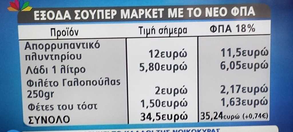 Τι θα σημαίνει ο νέος ΦΠΑ 18{ebf2de1fdbfefdec110a02f4c927aa7ce558be84e5a322e6c41137cb467b3c6d} στην τσέπη των καταναλωτών αποτυπώθηκε με έρευνα της πρωινής εκπομπής του Star.