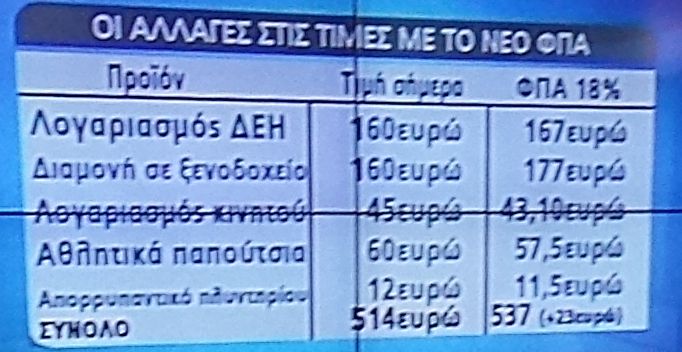 Επιβάρυνση ο νέος ΦΠΑ στις τσέπες των πολιτών (πίνακες)