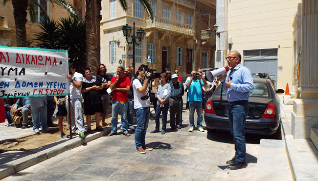 Συγκέντρωση διαμαρτυρίας και πορεία στο κέντρο της Ερμούπολης πραγματοποιήθηκε το μεσημέρι της Τετάρτης για την τραγική κατάσταση του Νοσοκομείου Σύρου.