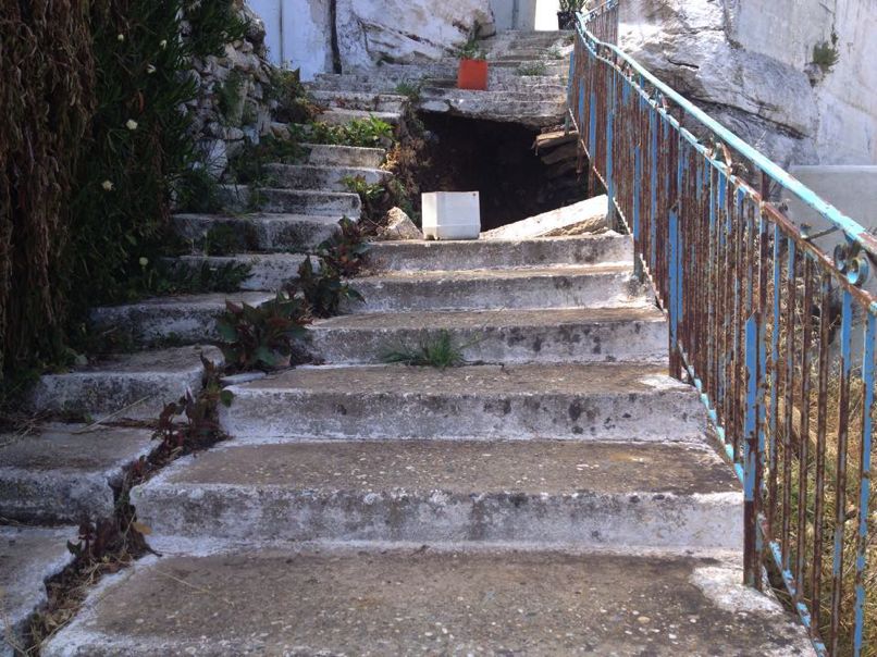 Την κατάσταση που έχει διαμορφωθεί σε μια από τις κεντρικές εισόδους στην Κωμιακή Νάξου, με την κατολίσθηση σε σκαλοπάτια, καταγγέλλει ο Κωμιακίτης κ. Κωσταντίνος Μιχ. Χωριανόπουλος.