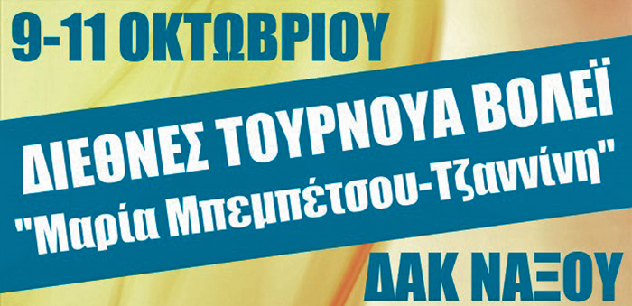 Ένα σημαντικό γεγονός για τα αθλητικά δρώμενα της Νάξου ξεκινά σήμερα και δεν είναι άλλο από το 1ο Διεθνές Τουρνουά Βόλεϊ προς τιμήν της γυμνάστριας Μαρίας Μπεμπέτσου – Τζαννίνη, το οποίο συνδιοργανώνει ο Πανναξιακός ΑΟΝ και η Περιφέρεια Νοτίου Αιγαίου.