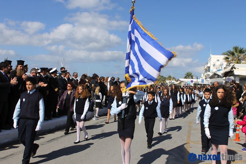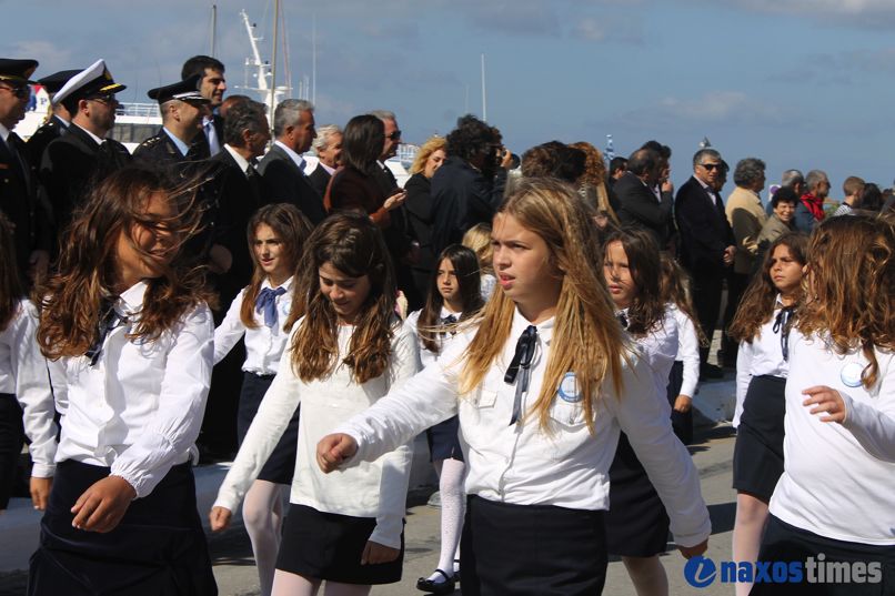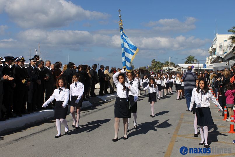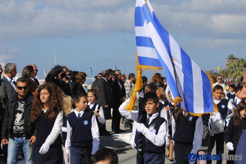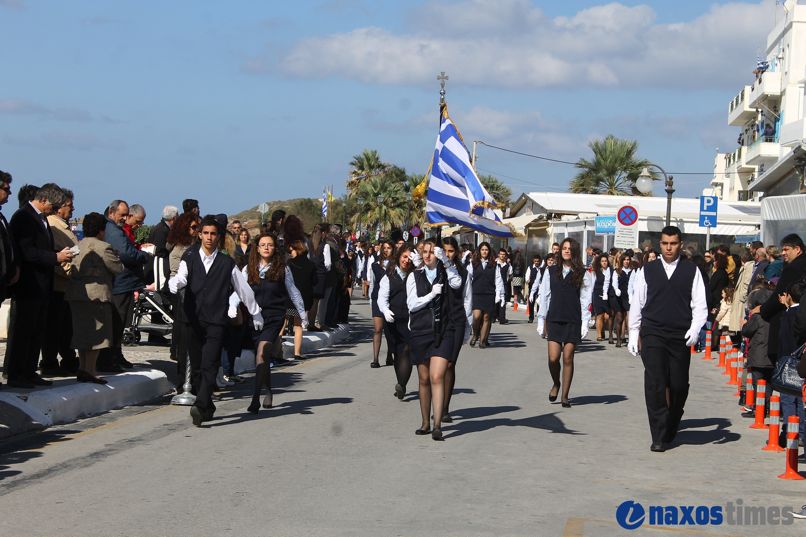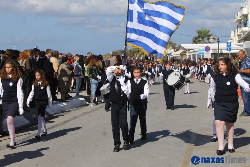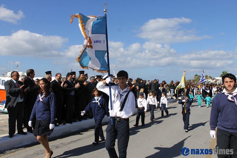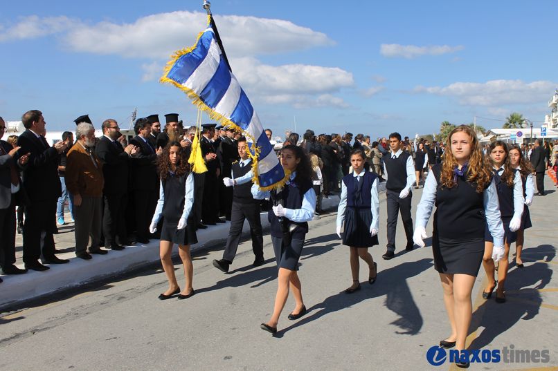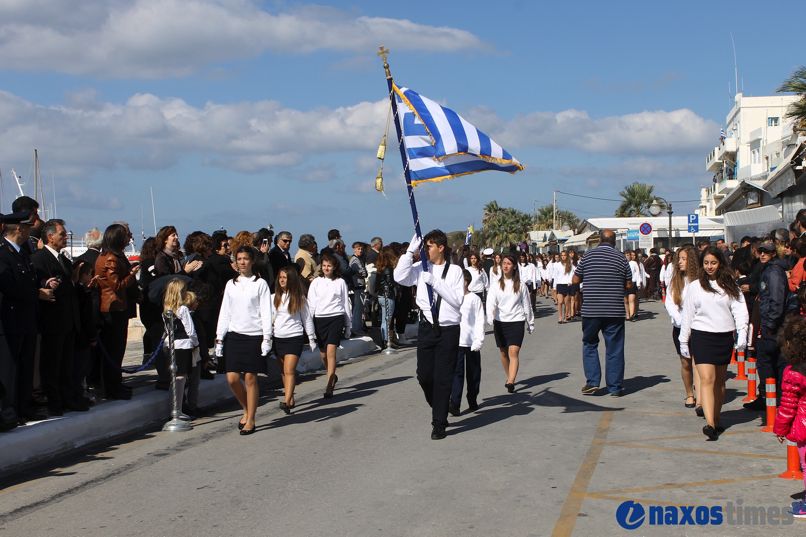 Με τη μαθητική παρέλαση στην κεντρική παραλιακή οδό κορυφώθηκαν σήμερα οι εορταστικές εκδηλώσεις για την επέτειο της 28ης Οκτωβρίου, στη Χώρα της Νάξου.
