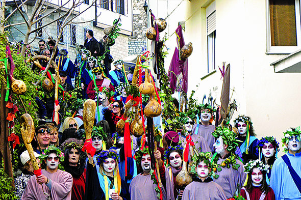Στη Θεσσαλία αναβιώνουν τα ρουγκάτσια. Ομάδες δεκαπέντε ατόμων μεταμφιεσμένων σε γαμπρό, νύφη, παπά κλπ γυρνούν από σπίτι σε σπίτι ζητώντας κέρασμα.