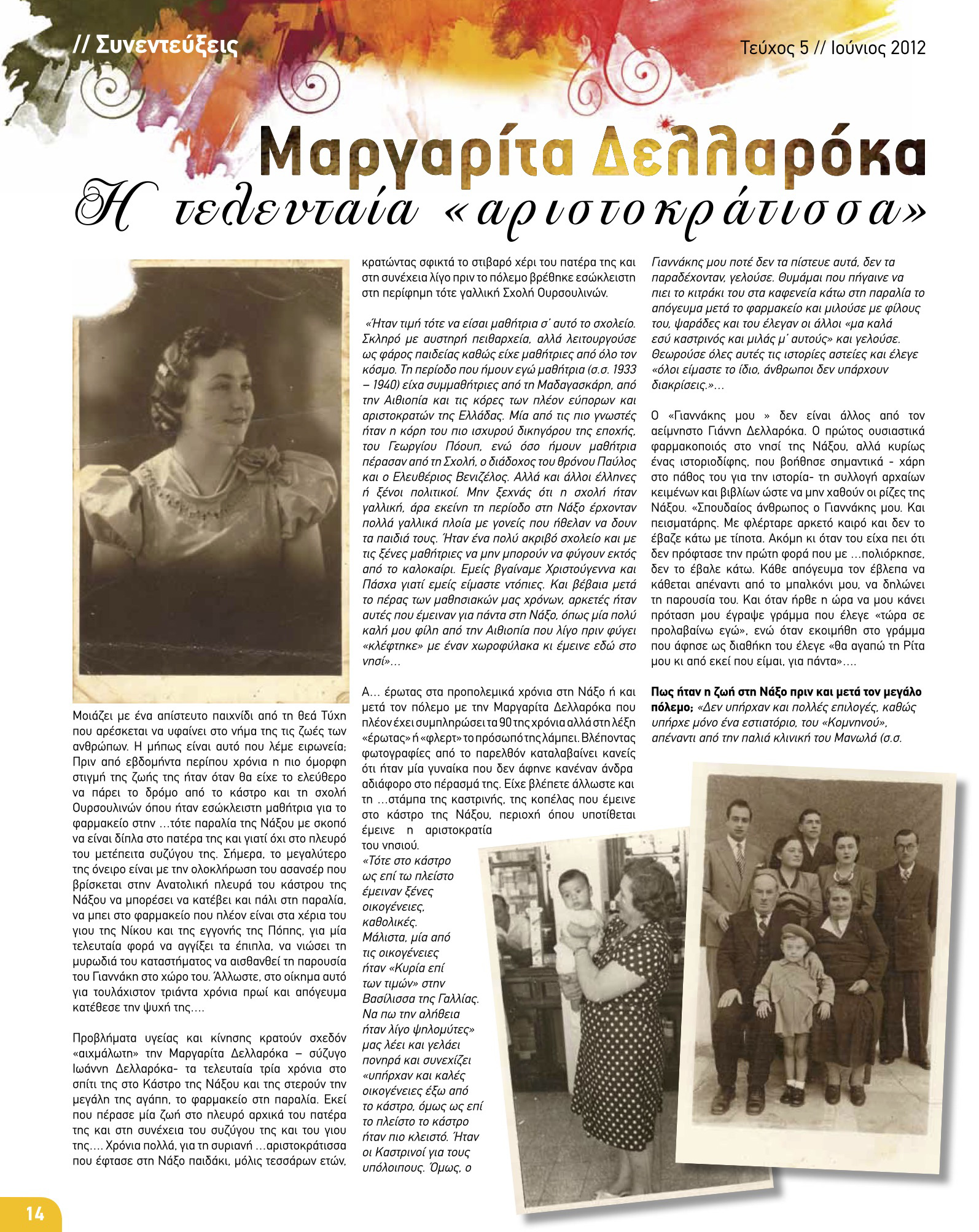 Αφιέρωμα στη Μαργαρίτα Δελλαρόκα από το περιοδικό my naxos (τεύχος 5 – Ιούνιος 2012)