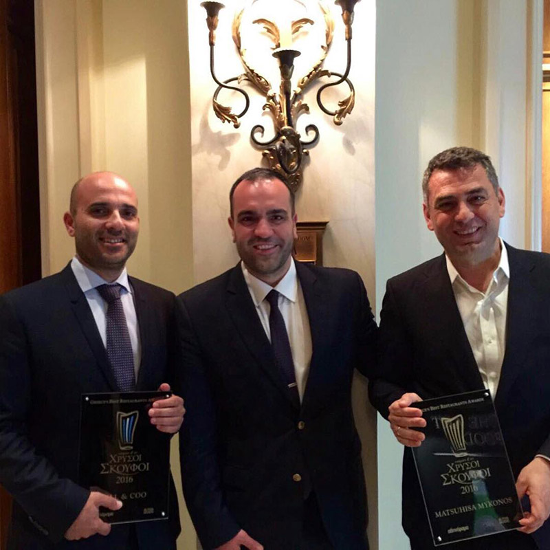 Με «Χρυσούς Σκούφους» βραβεύθηκαν τα εστιατόρια “Bill & Coo” και “Matsuhisa Mykonos” στη Μύκονο, αλλά και τα εστιατόρια «Κουκούμβαλος» και “Lycabettus Restaurant” στη Σαντορίνη, όπου τέσσερα ακόμη εστιατόρια (“Grace”, «Σελήνη», «Το Κόκκινο Ποδήλατο» και “Mylos”) βραβεύθηκαν από το «Αθηνόραμα» με το «Βραβείο Ελληνικής Κουζίνας 2016».