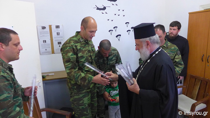 Εκεί, έγινε δεκτός από τον επικεφαλής του Σταθμού, Αρχιλοχία Χρήστο Αρεβύθη και τους υπηρετούντες Αξιωματικούς, στους οποίους προσέφερε λαμπάδες της Αναστάσεως και ευχήθηκε για το Άγιο Πάσχα.