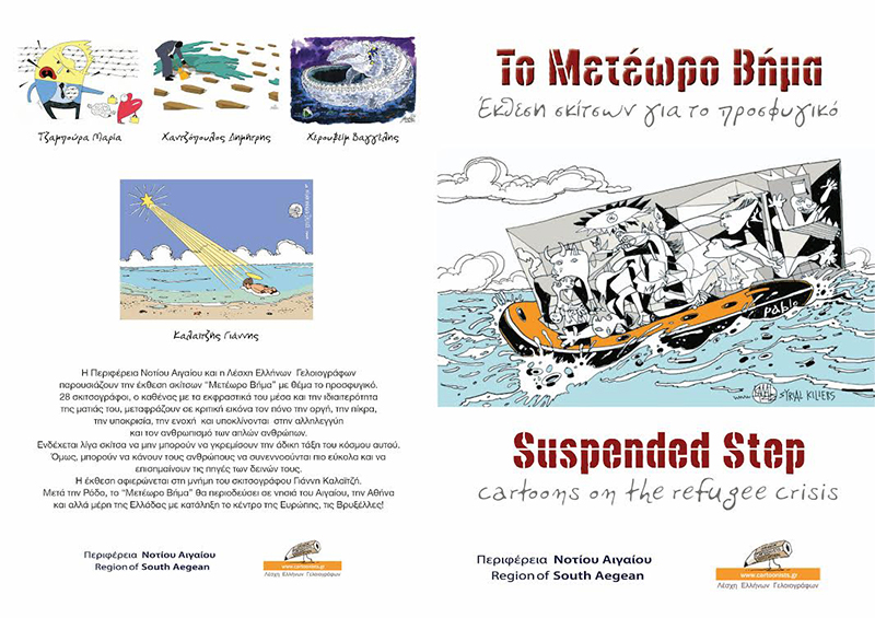 Στα νησιά της Λέρου και του Αγαθονησίου μεταφέρεται από αύριο, Μεγάλη Τρίτη, η έκθεση σκίτσου για το προσφυγικό ζήτημα με τίτλο «Μετέωρο Βήμα», την οποία συνδιοργανώνουν η Περιφέρεια Νοτίου Αιγαίου και η Λέσχη Ελλήνων Γελοιογράφων.