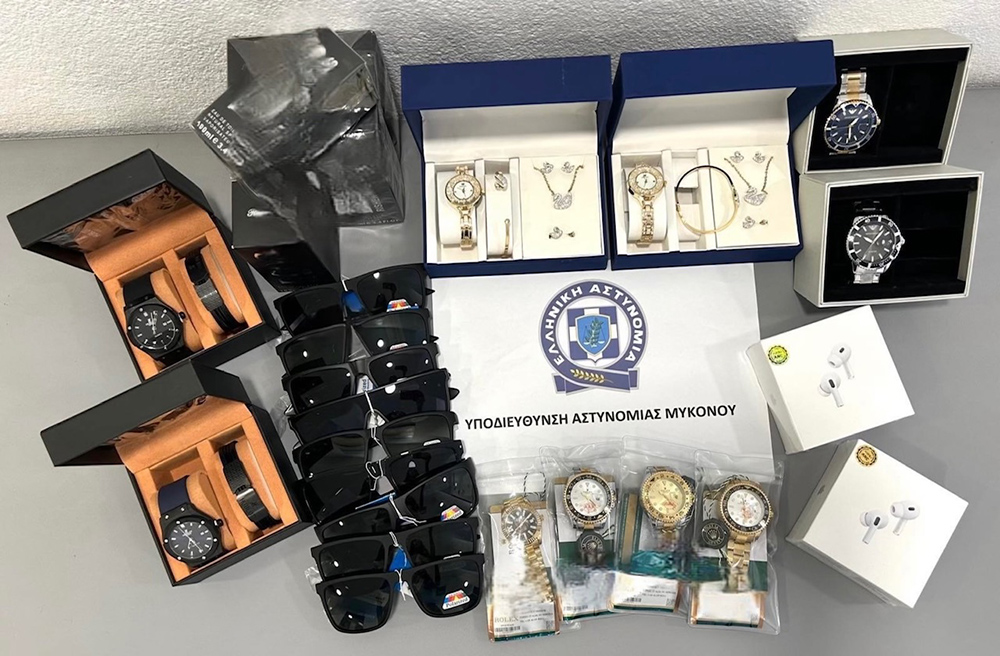 Την Πέμπτη 19 Ιουνίου 2025 το μεσημέρι συνελήφθη στη Μύκονο, από αστυνομικούς της Υποδιεύθυνσης Αστυνομίας Μυκόνου, 25χρονος αλλοδαπός ο οποίος κατείχε απομιμητικά προϊόντα (γυναικεία αξεσουάρ) γνωστών εμπορικών οίκων, τα οποία διέθετε προς πώληση. Κατασχέθηκαν -26- απομιμητικά προϊόντα.