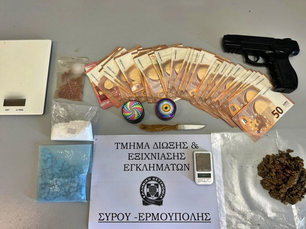 Συνελήφθησαν προχθές Σάββατο 21 Ιουνίου 2025 στη Σύρο από αστυνομικούς του Τμήματος Δίωξης και Εξιχνίασης Εγκλημάτων Σύρου – Ερμούπολης τρεις ημεδαποί (δύο άνδρες και μία γυναίκα, ηλικίας 19, 24 και 38 ετών), σε βάρος των οποίων σχηματίστηκε δικογραφία για κατοχή – διακίνηση ναρκωτικών ουσιών κατά συναυτουργία και οπλοκατοχή.