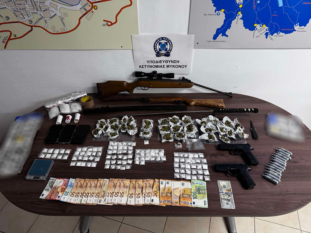 Από αστυνομικούς της Υποδιεύθυνσης Αστυνομίας Μυκόνου εξιχνιάστηκαν δύο σημαντικές υποθέσεις διακίνησης ναρκωτικών ουσιών και με πέντε εμπλεκόμενα άτομα σε βάρος των οποίων σχηματίσθηκαν ξεχωριστές ποινικές δικογραφίες για τα κατά περίπτωση αδικήματα της κατοχής – διακίνησης ναρκωτικών, βίας κατά υπαλλήλων – δικαστικών λειτουργών και οπλοκατοχή.