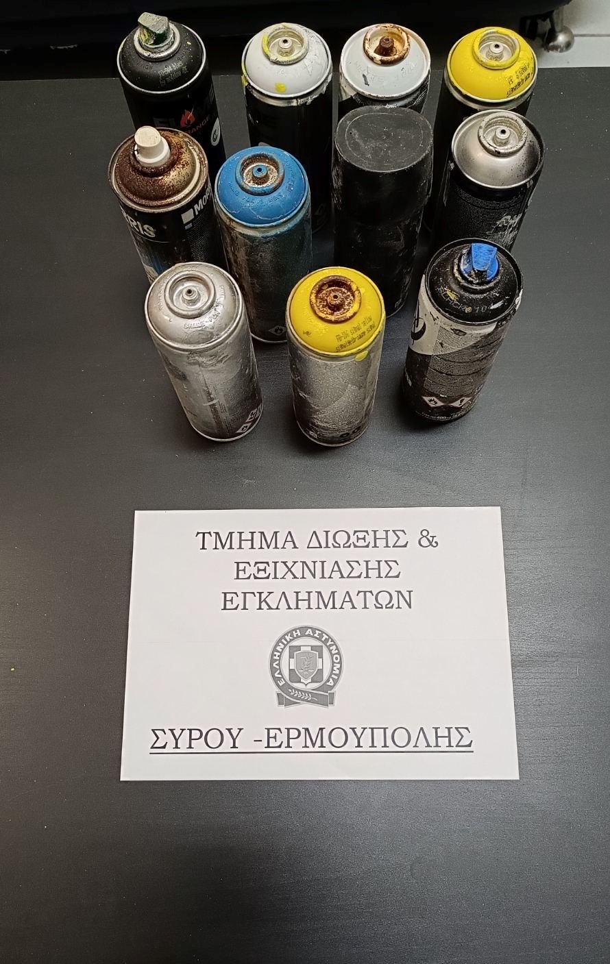 Στην κατοχή του 13χρονου βρέθηκαν και κατασχέθηκαν 11 σπρέι βαφής.