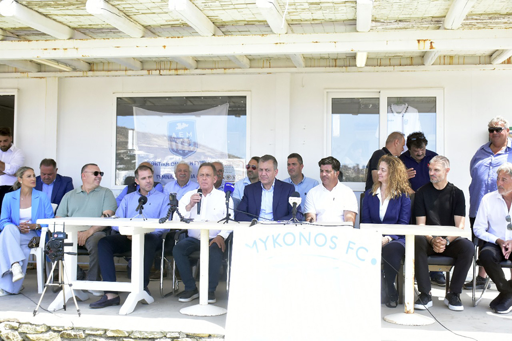 Το Έργο ανακοίνωσαν ο Υπουργός Αθλητισμού Γιάννης Βρούτσης και ο Δήμαρχος Μυκόνου Χρήστος Βερώνης, σε ειδική εκδήλωση που πραγματοποιήθηκε στο Αθλητικό Κέντρο του Κόρφου, παρουσία Δημοτικών Συμβούλων του Δήμου Μυκόνου, αθλητών/τριών, προπονητών/τριών, μελών των διοικήσεων των αθλητικών σωματείων Μυκόνου και κατοίκων του νησιού.