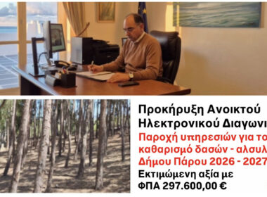 Προκήρυξη Ανοικτού Ηλεκτρονικού Διαγωνισμού για την Παροχή Υπηρεσιών για τον καθαρισμό δασών – αλσυλλίων Δήμου Πάρου 2026-2027