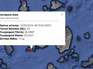 Σεισμική δόνηση μεγέθους 3 Ρίχτερ σημειώθηκε πριν λίγο στην Πάρο.