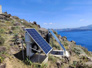 Καλώδια, φωτοβολταϊκά πάνελ και τοπογραφικά όργανα που μοιάζουν με τηλεσκόπια και μετρούν γωνίες και αποστάσεις «αγκαλιάζουν» την καλντέρα «Καλωδιώνονται» το