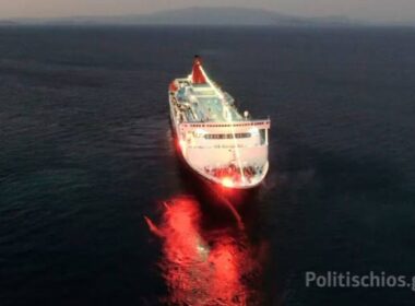 Χίος: Ο χαιρετισμός του «Νήσος Σάμος» στην Αγία Παρασκευή (video)