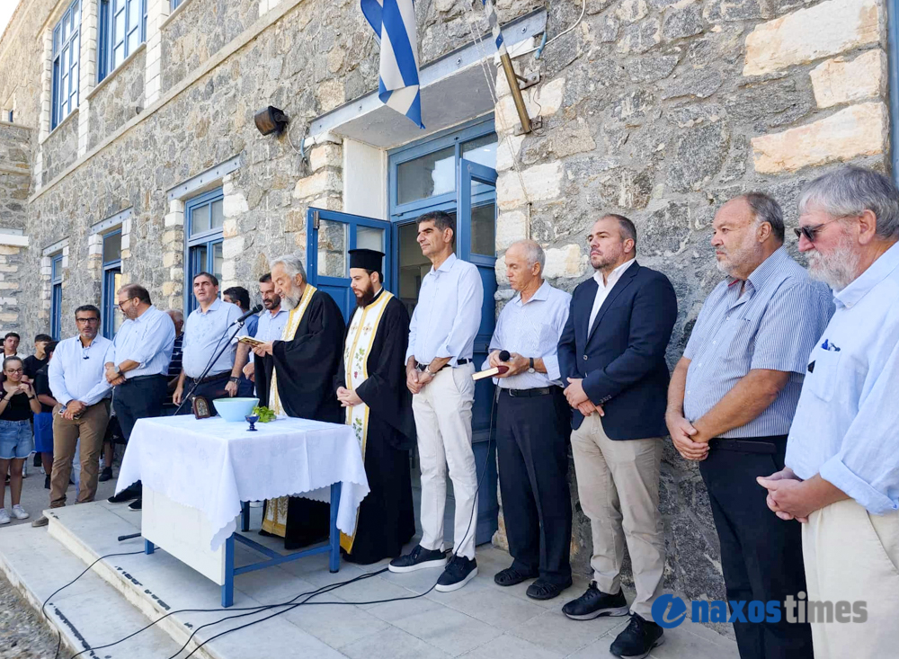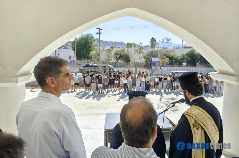 Μαθητές, εκπαιδευτικοί, ο βουλευτής Φίλιππος Φόρτωμας και εκπρόσωποι της Τοπικής Αυτοδιοίκησης στον αγιασμό του Γενικού Λυκείου Νάξου «Μανώλης Γλέζος».