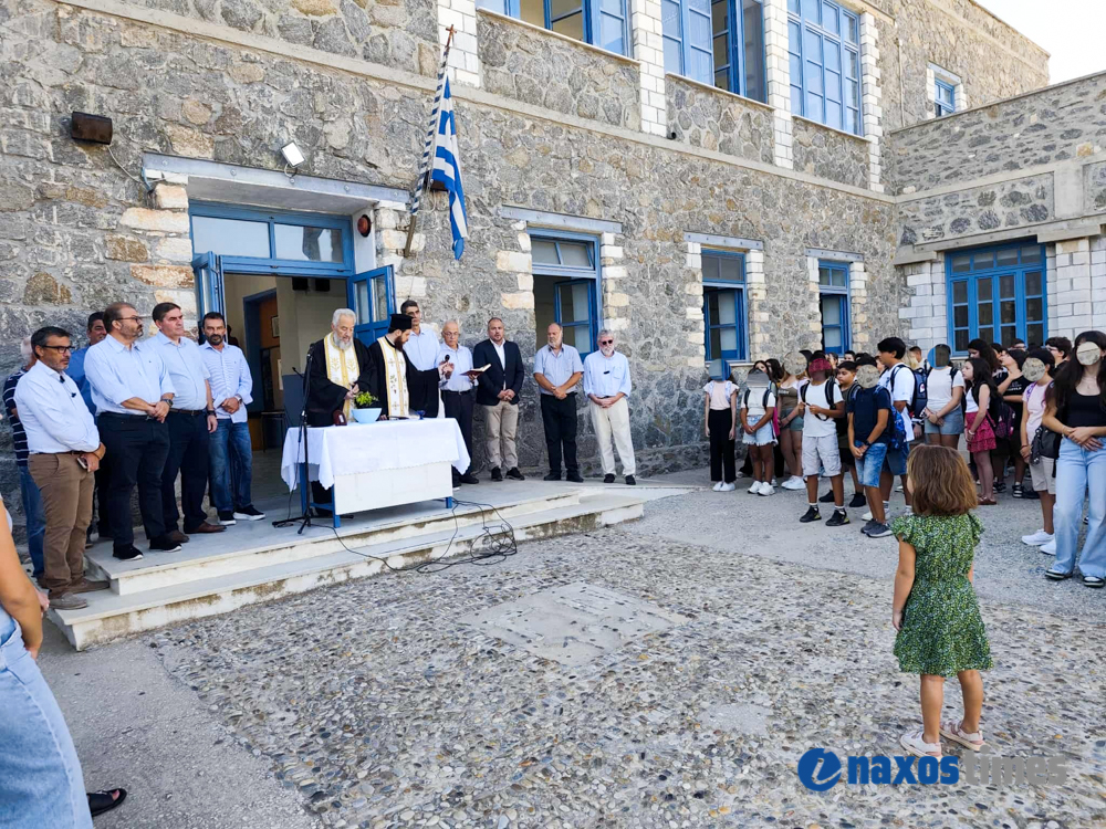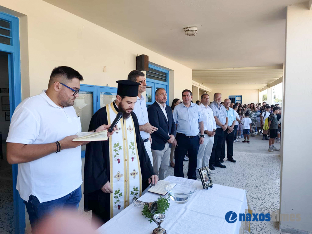 Στη Νάξο, μαθητές, εκπαιδευτικοί και γονείς επέστρεψαν στα σχολεία με προσδοκίες και ευχές για μια δημιουργική πορεία. Οι αγιασμοί τελέστηκαν με την παρουσία ιερέων, διευθυντών και εκπαιδευτικών, ενώ το παρών μεταξύ άλλων έδωσαν ο βουλευτής Κυκλάδων Φίλιππος Φόρτωμας, ο έπαρχος Νάξου Γιάννης Μαργαρίτης, ο δήμαρχος Δημήτρης Λιανός, αντιδήμαρχοι, δημοτικοί και περιφερειακοί σύμβουλοι, καθώς και εκπρόσωποι κομμάτων.