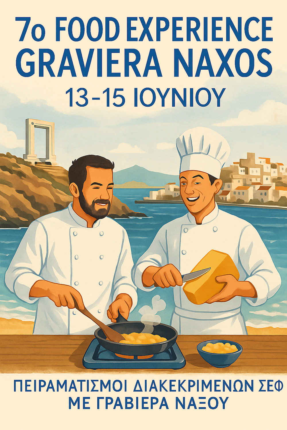 Το 7ο Food Experience Graviera Naxos διοργανώνεται από την Ένωση Αγροτικών Συνεταιρισμών Νάξου, με μεγάλους χορηγούς την Blue Star Ferries και την Ένωση Ξενοδόχων Νάξου και χορηγό επικοινωνίας τον Aegean Voice 107,5.