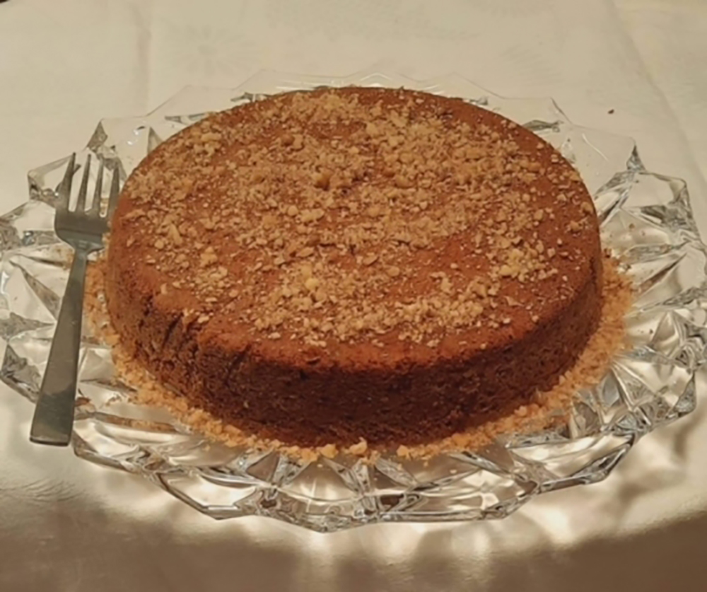 Πασπαλίζουμε την πίτα με τριμμένο καρύδι και σερβίρουμε .