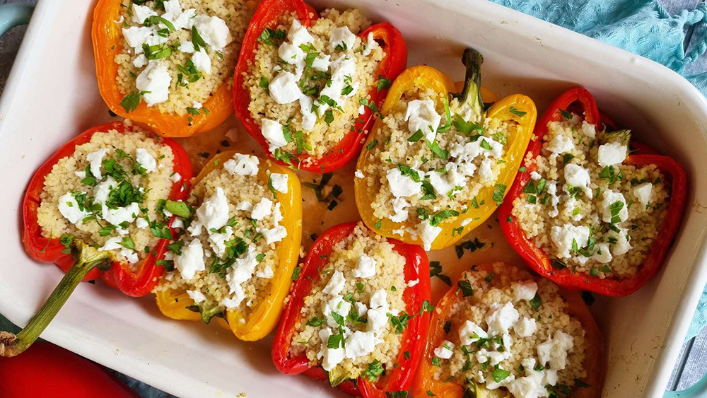 Πιπεριές γεμιστές με αρωματικό κους κους και λιωμένη φέτα, αυτές οι γεμιστές πιπεριές είναι η μεσογειακή εναλλακτική που θα αγαπήσεις. Ελαφριές και χορταστικές, τρώγονται ζεστές ή κρύες!