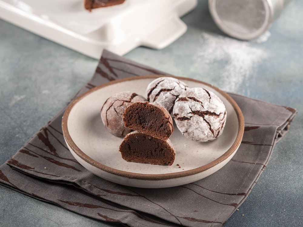 Σε ένα ρηχό μπολ βάζουμε την άχνη ζάχαρη και περνάμε τα μπαλάκια να καλυφθούν σε όλη την επιφάνεια. Τα μεταφέρουμε σε ένα ταψί στο οποίο έχουμε τοποθετήσει λαδόκολλα και ψήνουμε για 10 λεπτά.