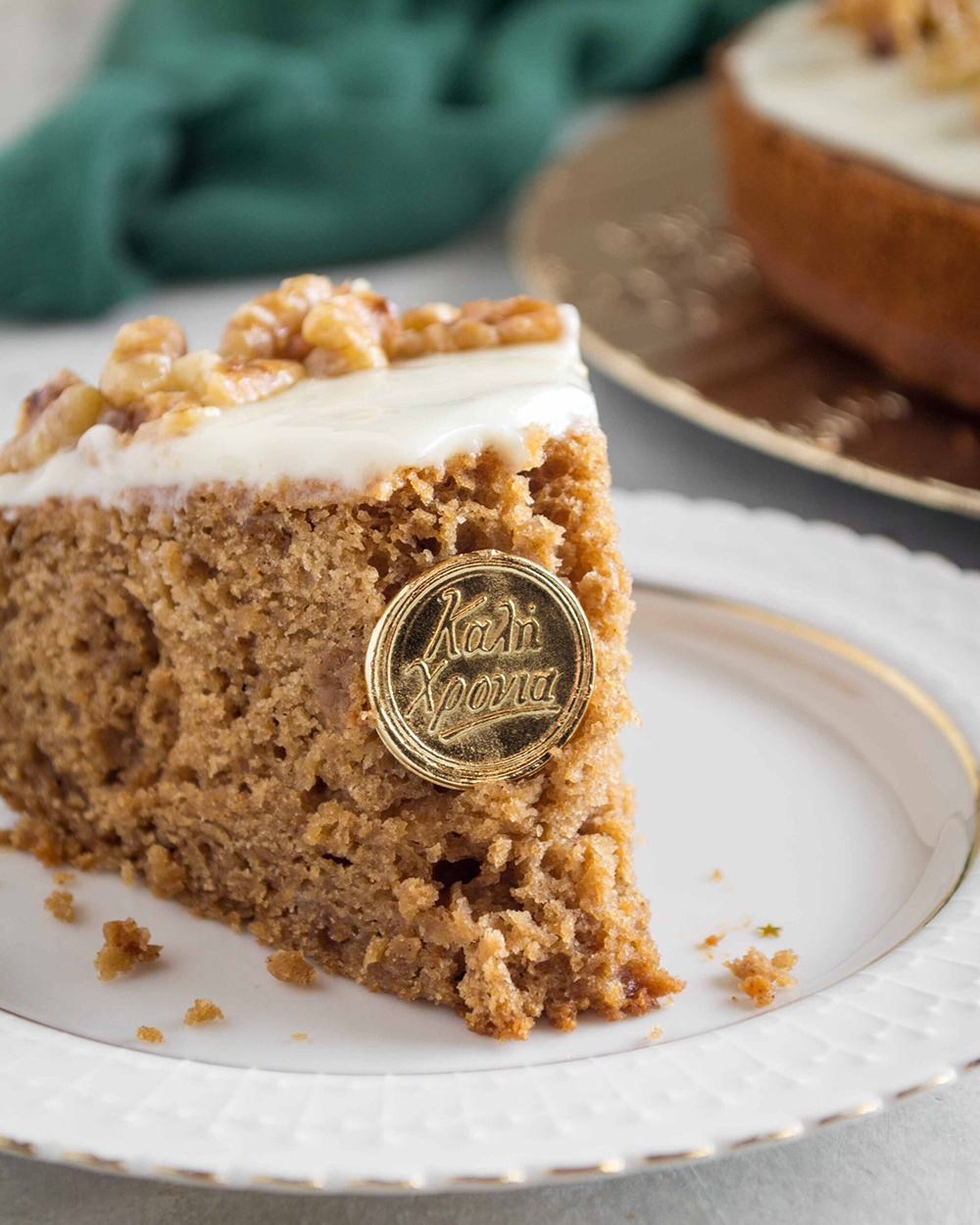 Φανταστική, αρωματική και αφράτη βασιλόπιτα κέικ με μήλο, καρύδια και απίθανη επικάλυψη κρέμας τυριού. Είναι πανεύκολη, γρήγορη και τόσο συγκλονιστικά νόστιμη που θα κλέψει τις εντυπώσεις στο εορταστικό τραπέζι.
