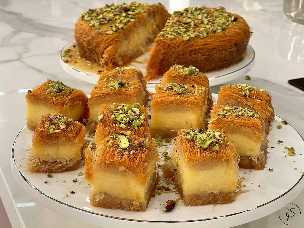 Από πάνω προσθέτουμε την Κρέμα και το υπόλοιπο κανταΐφι με βούτυρο.