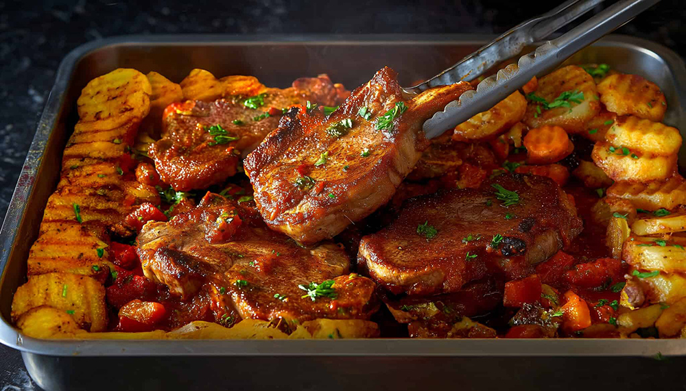Μπορείτε να ετοιμάσετε πεντανόστιμες μελωμένες χοιρινές μπριζόλες με λαχανικά στον φούρνο με μια απλή συνταγή.