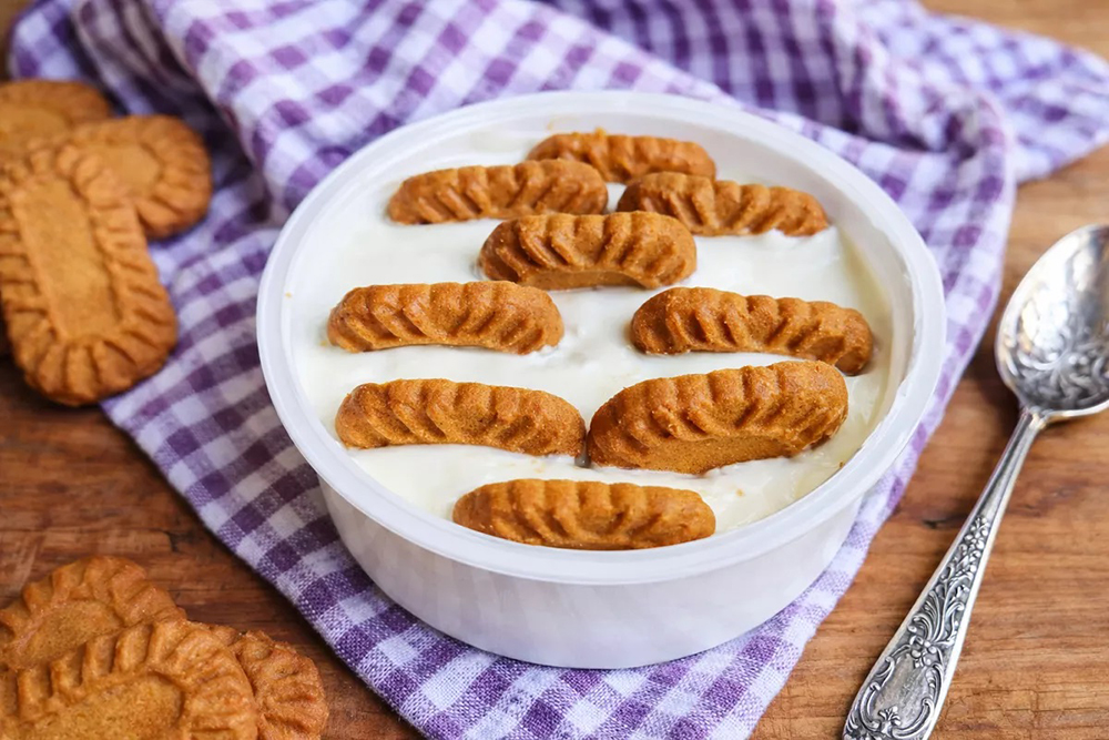 Όλη του η μαγεία βασίζεται στην απλότητα: μόνο δύο υλικά, γιαούρτι και μπισκότα Biscoff.