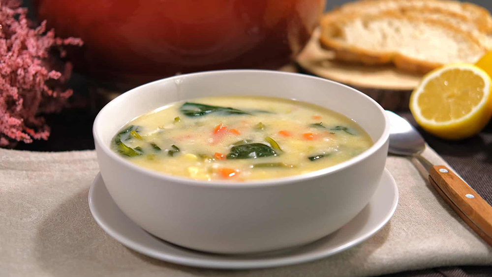 Αποσύρουμε την σούπα από την φωτιά και ρίχνουμε το αυγολέμονο μέσα στην σούπα.