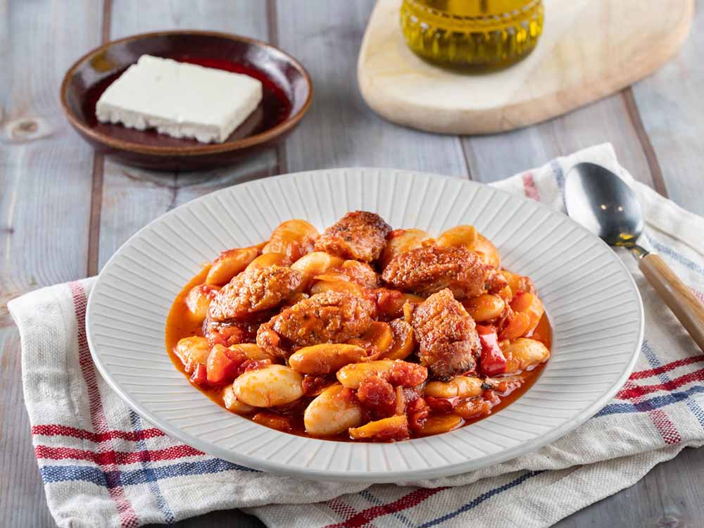 Ο μοναδικός συνδυασμός οσπρίων με την πλούσια γεύση του λουκάνικου, κάνει αυτό το πιάτο μια μοναδική έκρηξη απόλαυσης! Γίγαντες κοκκινιστοί με λουκάνικα στο φούρνο, από τον chef Γιώργο Τσούλη!