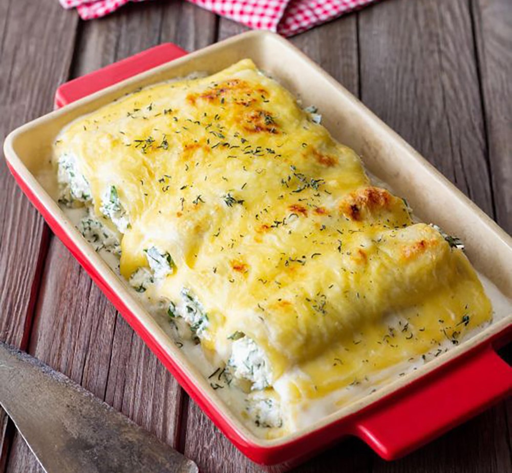 Κρεμώδη και πεντανόστιμα, αυτά τα κανελόνια είναι ιδανικά για το κυριακάτικο τραπέζι. Plus, με αυτή τη συνταγή μπορείς να αξιοποιήσεις και όσα ψητά σου έχουν περισσέψει από την Τσικνοπέμπτη.