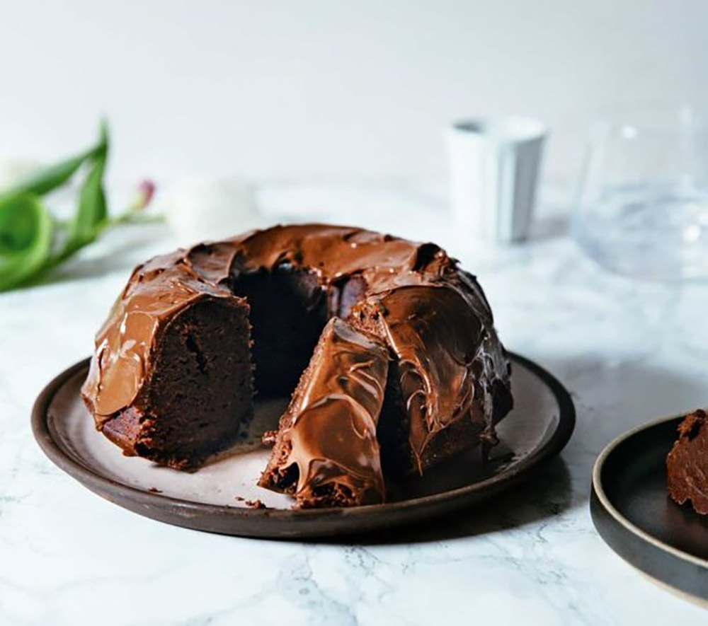 Ψήνουμε στη μεσαία σχάρα του φούρνου για περίπου 40-50 λεπτά (ή 30 λεπτά, για ορθογώνιο ταψί), μέχρι να βγει στεγνή η λάμα ενός μαχαιριού που θα βυθίσουμε στο κέντρο του κέικ, διαφορετικά ψήνουμε για λίγα λεπτά ακόμα.