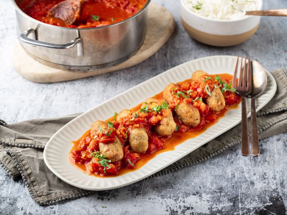Ένα από τα πιο αγαπημένα φαγητά όλων μας, στη vegan εκδοχή του. Πεντανόστιμα σουτζουκάκια από ρεβίθια του chef Γιώργου Τσούλη, σε σάλτσα ντομάτας, που θα αρέσουν απίστευτα σε μικρούς και μεγάλους!