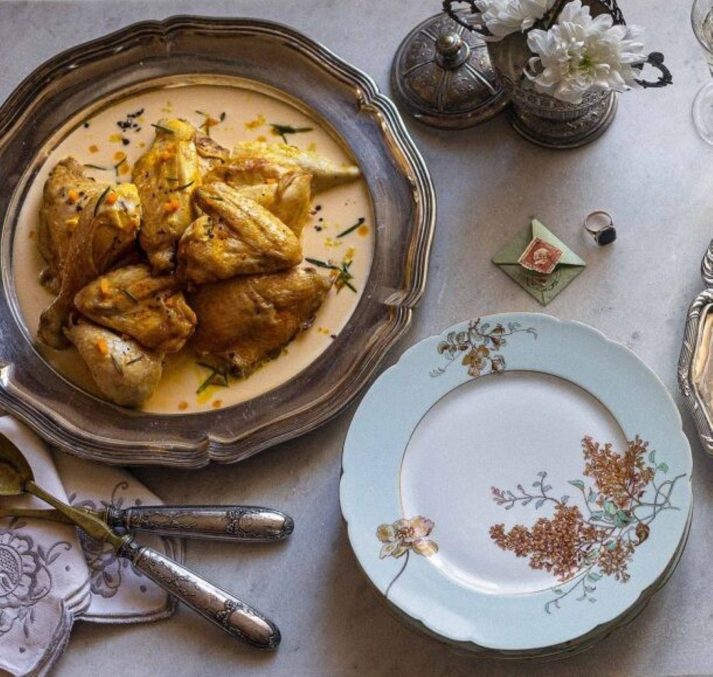 Με έμπνευση από το γιορτινό τραπέζι της Ρεΐζαινας στο μυθιστόρημα του Μ. Καραγάτση «Η Μεγάλη Χίμαιρα», η σεφ Νένα Ισμυρνόγλου έφτιαξε αυτό το κοτόπουλο με άσπρη σάλτσα καβουρδιστή.