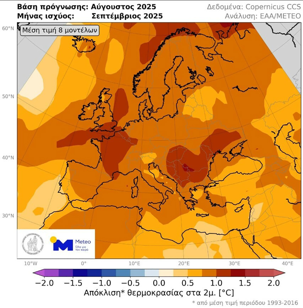 Θερμότερος του κανονικού αναμένεται να είναι ο ερχόμενος Σεπτέμβριος στη Νοτιοανατολική Ευρώπη, συμπεριλαμβανομένης της Ελλάδας, σύμφωνα με τις μακροπρόθεσμες προγνώσεις που εκδόθηκαν στις αρχές Αυγούστου.