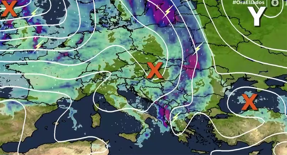 Μπορεί να κάνει ζέστη προς τη νότια και ανατολική Ελλάδα σήμερα, ταυτόχρονα όμως, σύμφωνα με τον Κλέαρχο Μαρουσάκη, περνάει και η κακοκαιρία από τη νότια Ιταλία προς τα Βαλκάνια και αυτό θα έχει σαν συνέπεια να δούμε ισχυρές καταιγίδες προς τη βόρεια – βορειοηπειρωτική Ελλάδα.