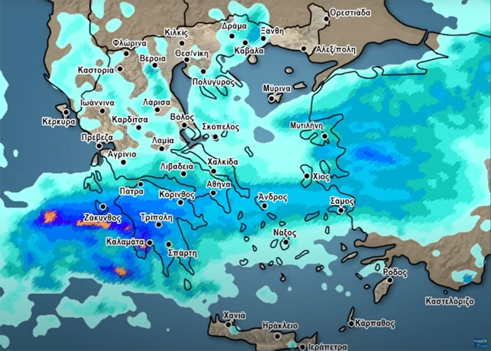 Βροχές και καταιγίδες στο μεγαλύτερο μέρος της χώρας, η γλώσσα βροχής θα περάσει πάνω από τις Κυκλάδες από το βράδυ της Κυριακής και την Δευτέρα