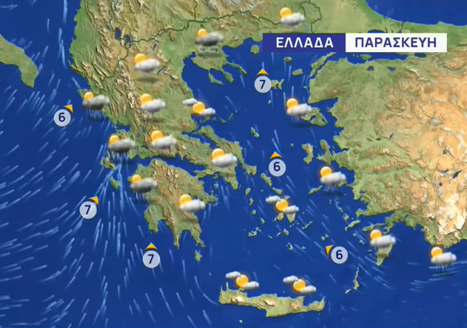 Άνεμοι: Από νότιες διευθύνσεις 4 με 6, στα ανατολικά και νότια τοπικά 7 μποφόρ.