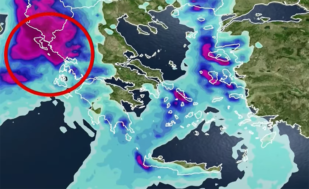 Σύμφωνα με τον Κλέαρχο Μαρουσάκη, το νέο βαρομετρικό χαμηλό από την Ιταλία κινείται προς τα βορειοανατολικά θα ωθήσει τμήμα των εγκλωβισμένων πολικών αερίων μαζών από τα βορειοδυτικά Βαλκάνια προς την περιοχή μας με αποτέλεσμα την εκδήλωση πυκνών χιονοπτώσεων σε ορεινές περιοχές της κεντρικής και βόρειας ηπειρωτικής χώρας.