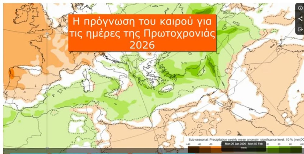 «Η Πρωτοχρονιά δεν σηματοδοτεί μόνο την αλλαγή του ημερολογίου, αλλά και την πρώτη «υπογραφή» του καιρού στο νέο έτος. Οι ατμοσφαιρικές διεργασίες που εξελίσσονται πάνω από την Ευρώπη και τη Μεσόγειο δίνουν τον τόνο των πρώτων ημερών του Ιανουαρίου, συνδυάζοντας τον χειμωνιάτικο χαρακτήρα με στοιχεία μεταβλητότητας και αβεβαιότητας.