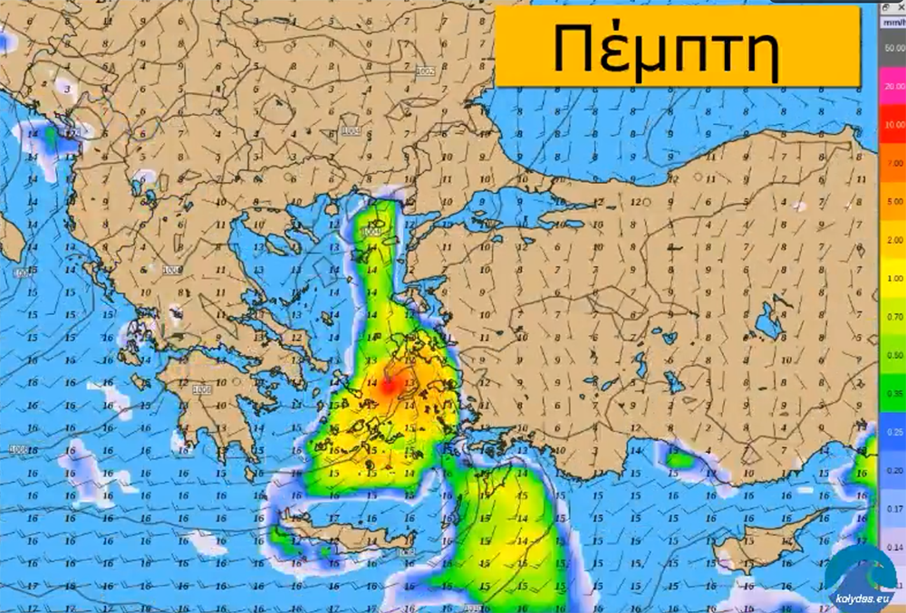 Οι άνεμοι θα πνέουν στα δυτικά και τα νότια δυτικοί νοτιοδυτικοί 3 με 5, τοπικά 6 και βαθμιαία στα νότια έως 7 μποφόρ. Στις υπόλοιπες περιοχές μεταβλητοί 3 με 4 και στο Αιγαίο από νότιες διευθύνσεις 4 με 5 και από το απόγευμα 6 μποφόρ.