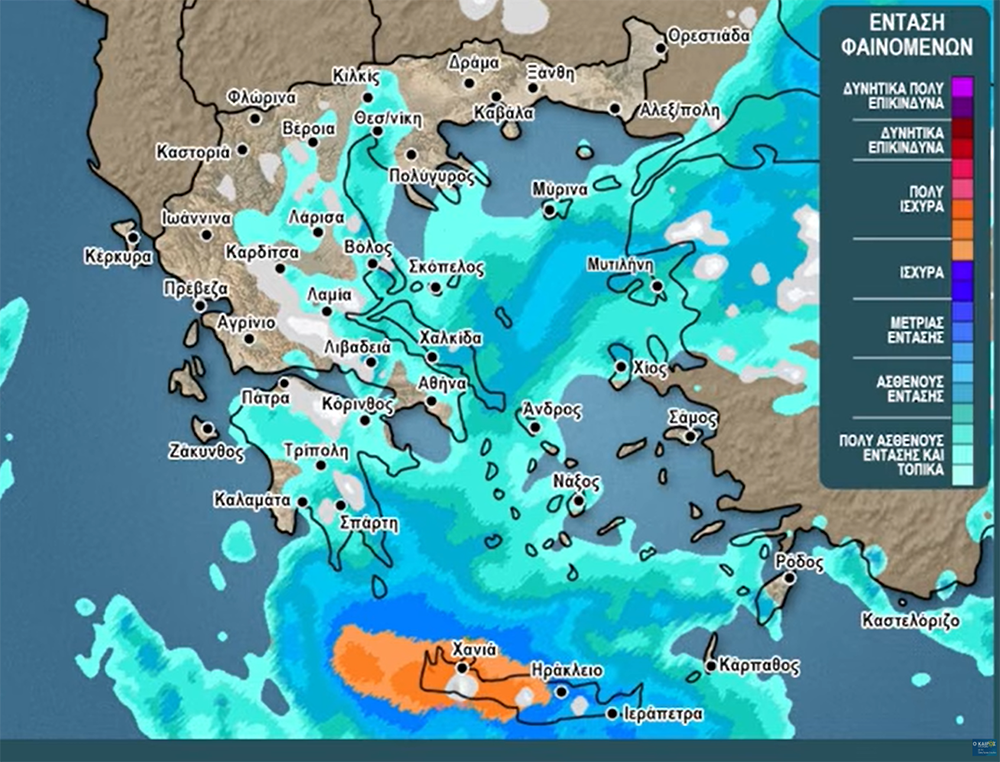 Άστατος θα είναι ο καιρός την Παρασκευή με τον Σάκη Αρναούτογλου να σημειώνει ότι χρειάζεται προσοχή από την Κρήτη έως την Κάρπαθο. Ειδικότερα, ισχυρά φαινόμενα θα έχουμε από τα κεντρικά έως τα δυτικά του νησιού, ενώ βροχές αναμένονται και στην Εύβοια. Φαινόμενα με καταιγίδες θα έχουμε και στα ΝΑ της Πελοποννήσου. Επίσης μέσα στην μέρα θα έχουμε καταιγίδες στη Ρόδο αλλά και στις Κυκλάδες, ενώ οι άνεμοι ενισχυμένοι στο Αιγαίο. Η θερμοκρασία θα φτάσει το μεσημέρι στα κεντρικά τους 13 βαθμούς, στα βόρεια από 7 έως και 15 και στα νότια τους 12 βαθμούς.