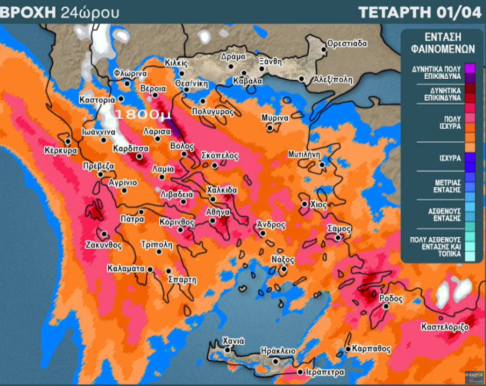 Την ίδια ώρα, η Εθνική Μετεωρολογική Υπηρεσία προχώρησε στην επικαιροποίηση του Έκτακτου Δελτίου Επικίνδυνων Καιρικών Φαινομένων που είχε εκδώσει τη Δευτέρα (30/3).